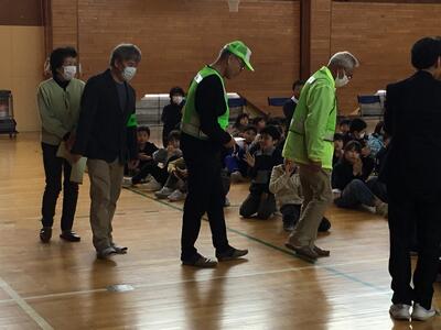 雨の日も猛吹雪の日も、毎日欠かさず本校の子ども達の登校を見守っていただいてる、屋代地区の交通安全指導委員と屋代見守り隊の方々をお招きして「感謝の会」が行われました。