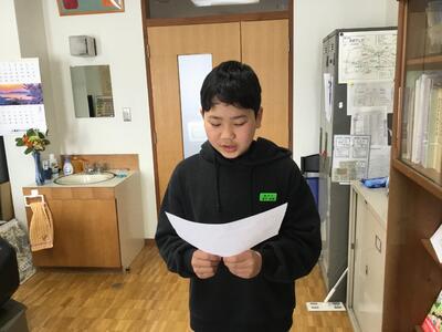 子ども達からのお礼の気持ちを込めた手紙と合唱のプレゼントをお贈りしました。代表して青木会長さんからもお言葉をいただきました。