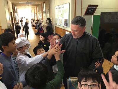 また、今日は外国語指導員のマカロン先生の今年度の勤務最終日でした。