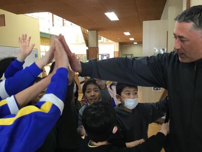 昼休みの体育館では、修了式の児童代表あいさつの練習をする5年生とそれをちゃんと応援してくれる先生と仲間がいました。