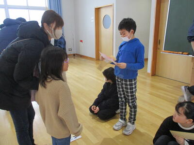 次年度の通学班の班長さんとの顔合わせから始まり、教室でお絵描きをしたり、5年生のお兄さんお姉さんたちと体育館でたくさん遊ぶことができました。