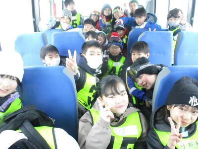 気温は低めですが、子ども達は元気いっぱい。無事スキー教室へ出発しました。