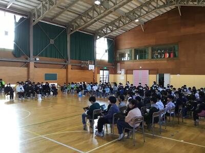 全校集会 校長講話のテーマは「節目について」でした。