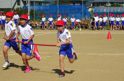 高学年「レスキューつなひき」 力だけでなく足の速さも勝負のカギです。
