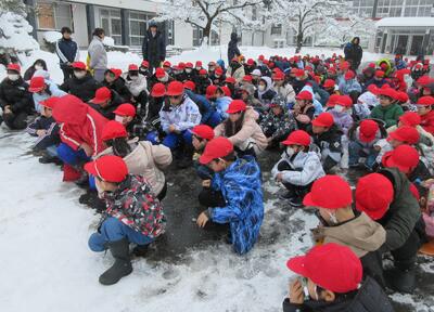 冬季の避難訓練