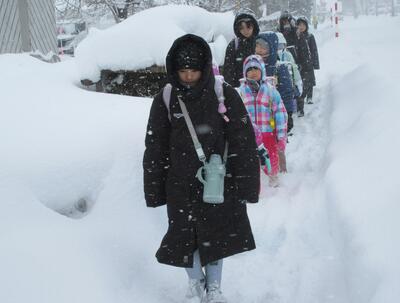 ここ最近の寒波の影響で、雪がたくさん降り、登下校も大変そうです。