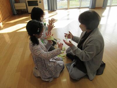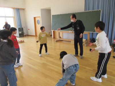 同じ時間に1年生は、地域の先生方と「昔の遊び」に取り組みました。