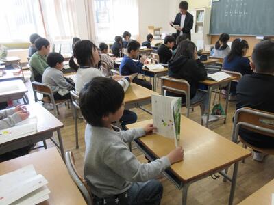 5年1組。国語。自分の名前を使った自己紹介で交流です。