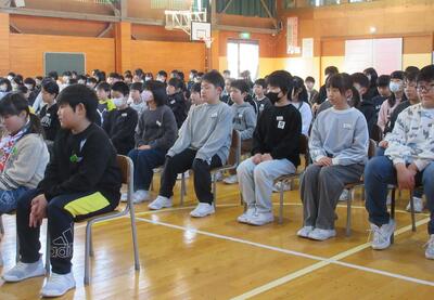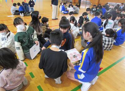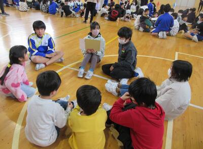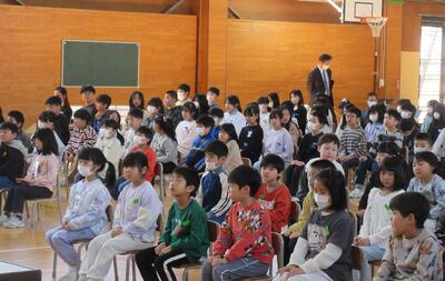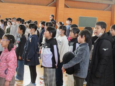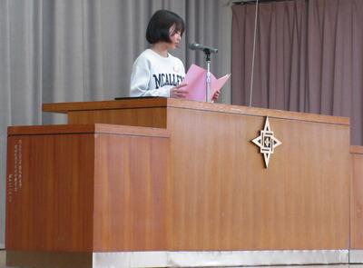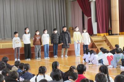 代表児童が一年間を振り返り、自分の成長と次年度への決意を述べました。